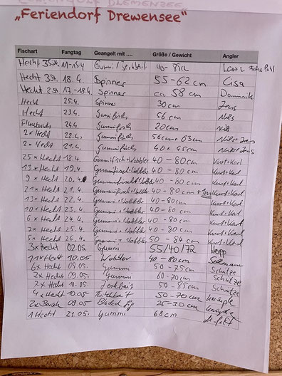 In drei Angeltagen wurden im Oktober von zwei leidenschaftlichen Anglern des Feriendorfes 27 Fische der Arten Hecht, Zander und Barsch im Drewensee gefangen: